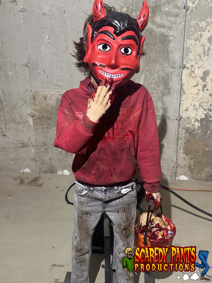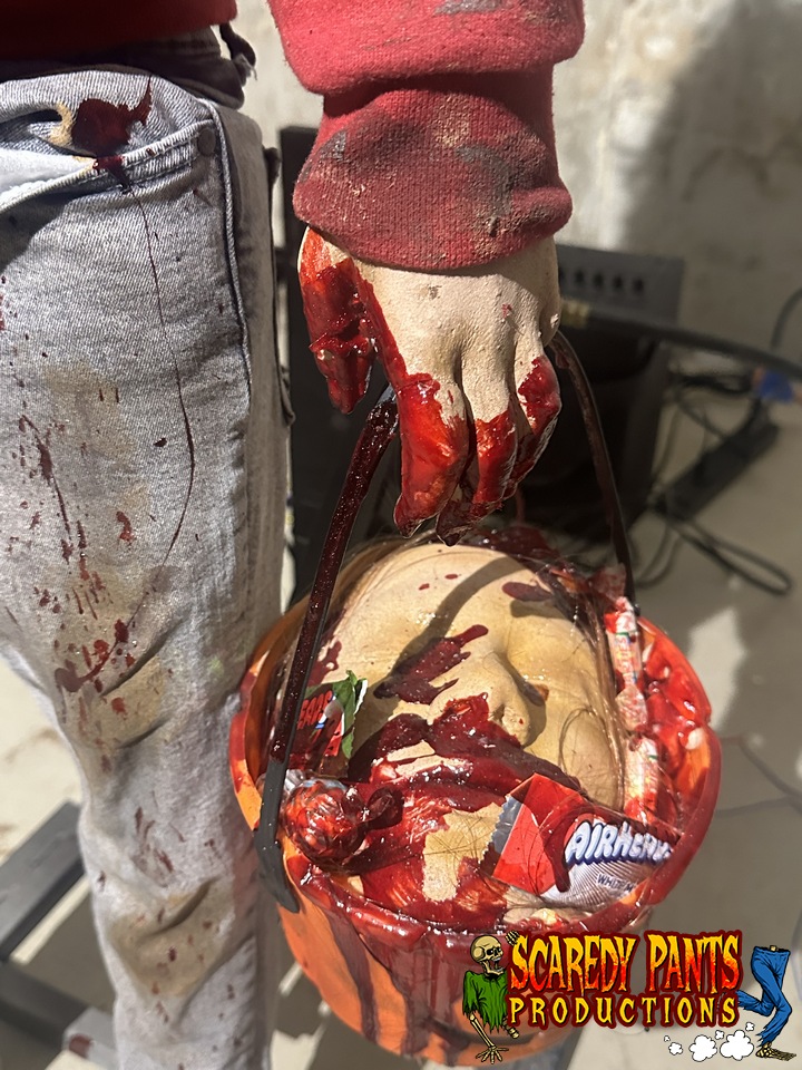“Trick or Eat Her” is a high-impact, story-driven animatronic that plays on the unsettling contrast between nostalgic Halloween innocence and something far more disturbing lurking beneath the surface. Designed as a classic misdirection scare, this prop lures guests in with a familiar trick-or-treat image—only to deliver a shocking transformation they won’t forget.