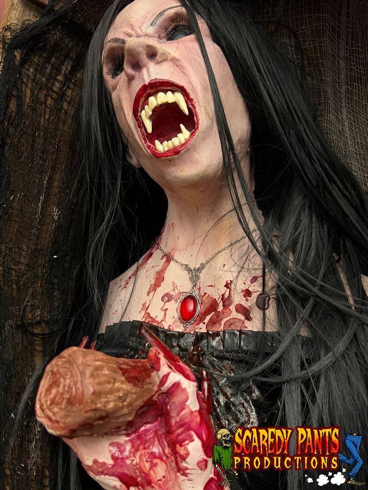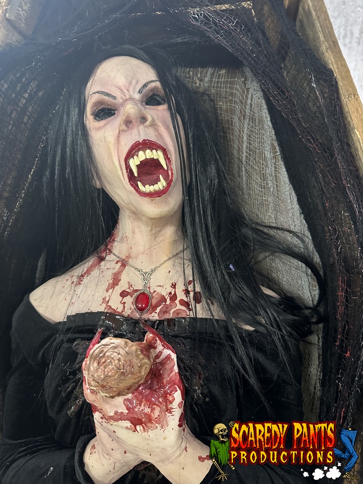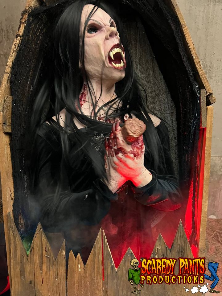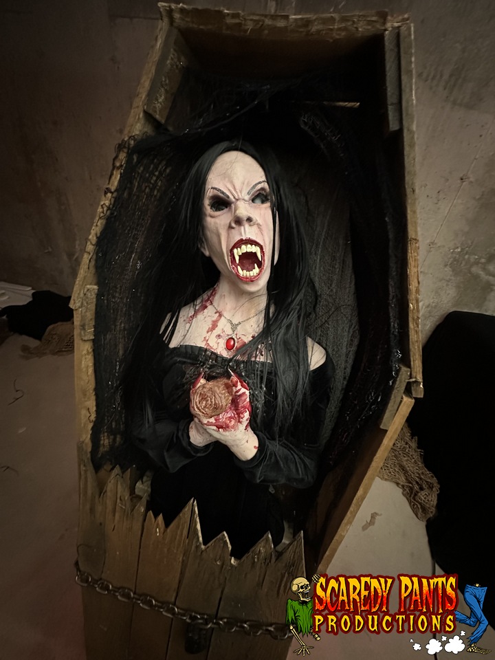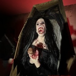 Mechanical Features: Utilizing two air cylinders, the vampire bride can perform a deathly scare: