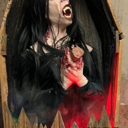 Interactive Experience: The vampire bride can be activated via a motion sensor, push button or any other type of trigger, allowing her to spring to life unexpectedly. As she moves and screams, the fog envelops her, making her a truly immersive experience for anyone brave enough to approach.